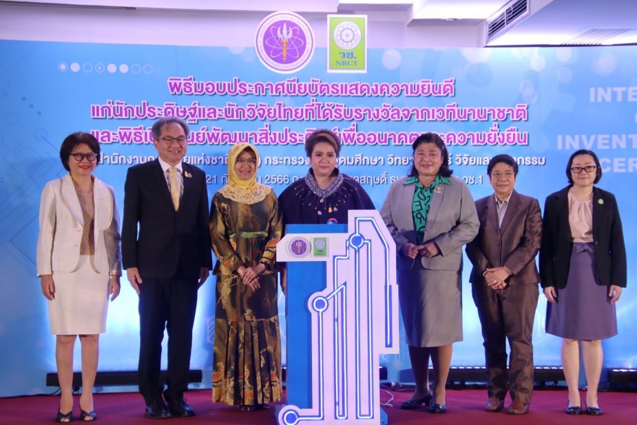 เมื่อวันที่ 21 ก.ย. 66 กระทรวงการอุดมศึกษาฯ โดย สำนักงานการวิจัยแห่งชาติ (วช.) จัดพิธีมอบประกาศนียบัตรแสดงความยินดีแก่นักประดิษฐ์ และนักวิจัยไทย ที่ได้รับรางวัลจากเวทีนานาชาติ เพื่อประกาศเกียรติคุณแก่นักประดิษฐ์ และนักวิจัยไทย ที่ได้รับรางวัลจากการนำผลงานวิจัยและนวัตกรรมไปประกวดเวทีนานาชาติ กว่า 48 ผลงาน จาก 2 เวที และพิธีเปิดศูนย์พัฒนาสิ่งประดิษฐ์เพื่ออนาคตและความยั่งยืน เพื่อสนับสนุนการเรียนรู้ และพัฒนาต่อยอดผลงานวิจัย สิ่งประดิษฐ์ของนักวิจัย โดยมี นางสาวศุภมาส อิศรภักดี รมว.อุดมศึกษาฯ (อว.) เป็นประธานในพิธีฯ และปาฐกถาพิเศษในหัวข้อ “สิ่งประดิษฐ์เพื่ออนาคตและความยั่งยืน” ณ ห้องประชุมจอมพลสฤษดิ์ ธนะรัชต์ อาคาร วช.1 และศูนย์พัฒนาสิ่งประดิษฐ์เพื่ออนาคตและความยั่งยืน อาคาร วช.7 สำนักงานการวิจัยแห่งชาติ กรุงเทพมหานคร