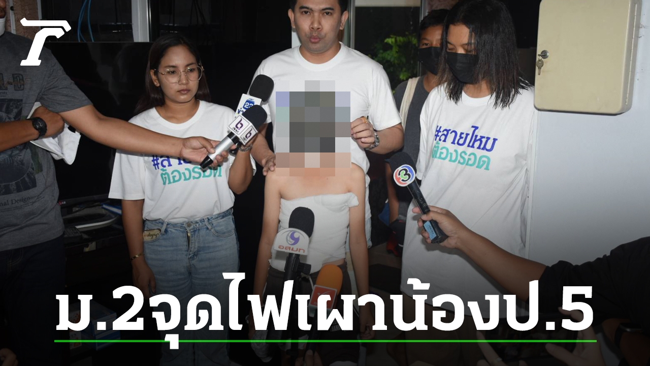 แม่เข้าร้องเพจสายไหมฯ ลูกชาย ป.5 ถูก 2 รุ่นพี่ ม.2 เล่นโหด ล็อกแขนราดด้วยแอลกอฮอล์แล้วจุดไฟเผา ที่สนามเด็กเล่น ย่านลำลูกกา จนเป็นแผลพุพองลำตัวและต้นขา จนมีอาการซึม ไม่กล้าบอกเพราะถูกข่มขู่ จึงพาไปแจ้งความที่ สภ.คูคต