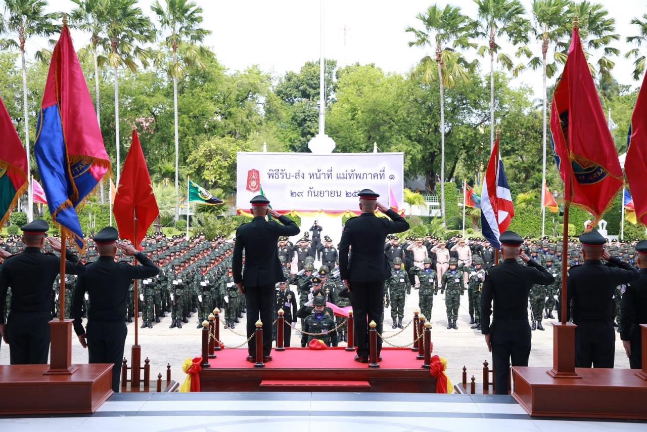 "บิ๊กปู" จัดพิธีรับ-ส่งหน้าที่การบังคับบัญชา "แม่ทัพภาคที่ 1" ให้ "บิ๊กรุ่ง" โดยมี ผบ.นขต.ทภ.1 เข้าร่วมพิธีรับ ขณะที่ "บิ๊กรุ่ง" ย้ำเดินหน้าเทิดทูนสถาบัน ชาติ ศาสนา และพระมหากษัตริย์ ดูแลประชาชน และสวัสดิการกำลังพลทุกระดับ ด้วยความยุติธรรม