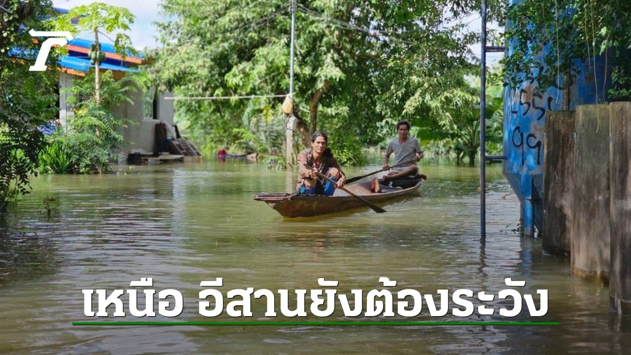 ภาคตะวันออกเฉียงเหนือ มีฝนฟ้าคะนองร้อยละ 40 ของพื้นที่ กับมีฝนตกหนักบางแห่งบริเวณจังหวัดบึงกาฬ นครพนม สกลนคร มุกดาหาร ยโสธร อำนาจเจริญ ศรีสะเกษ และอุบลราชธานี อุณหภูมิต่ำสุด 24-26 องศาเซลเซียส อุณหภูมิสูงสุด 33-34 องศาเซลเซียส ลมแปรปรวน ความเร็ว 10-25 กม./ชม.
