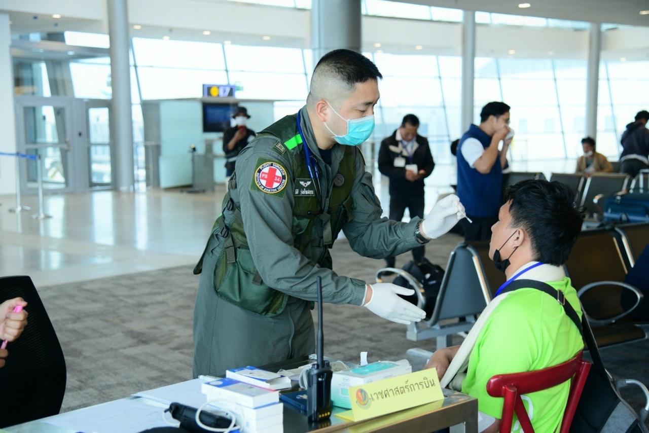 เมื่อเดินทางถึงสนามบินดอนเมือง ผู้โดยสารจะผ่านกระบวนการตรวจร่างกาย การตรวจคนเข้าเมือง การตรวจสอบสิทธิ ก่อนเดินทางไปสถาบันบำราศนราดูรเป็นลำดับต่อไป