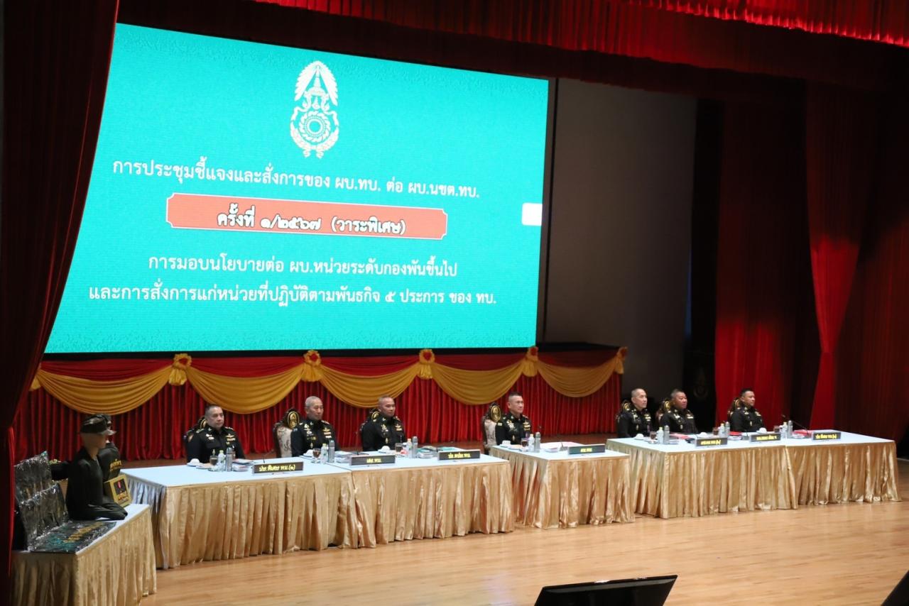 เมื่อวันที่ 30 ตุลาคม 2566 ที่หอประชุมกิตติขจร บก.ทบ. พล.อ.เจริญชัย หินเธาว์ ผบ.ทบ. เป็นประธานการประชุมชี้แจงและสั่งการต่อผู้บังคับหน่วยขึ้นตรงกองทัพบก วาระพิเศษที่ได้เชิญผู้บังคับหน่วยตั้งแต่ระดับผู้บังคับกองพันจนถึงผู้บัญชาการกองพลหรือเทียบเท่ากว่า 500 นาย เข้าร่วมประชุมรับมอบนโยบายการปฏิบัติงานในปีงบประมาณ 2567
