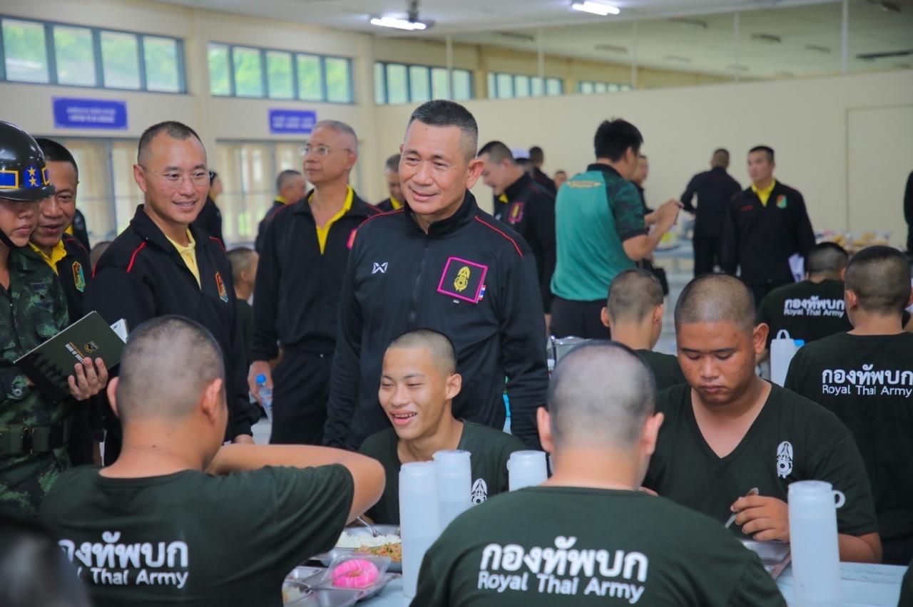 "ผบ.ทบ." ลุย ปตอ.พัน.5 ตรวจเยี่ยมให้กำลังใจทหารใหม่ ผลัด 2/2566 พร้อมได้ดูความเป็นอยู่ของโรงนอน ห้องฝึกอบรม ระบบสุขาภิบาล และโรงประกอบเลี้ยง และร่วมทานอาหารกลางพลทหาร กำลังพล ก่อนจะมอบแนวทางฝึกอย่างปลอดภัย ใส่ใจเหมือนครอบครัว