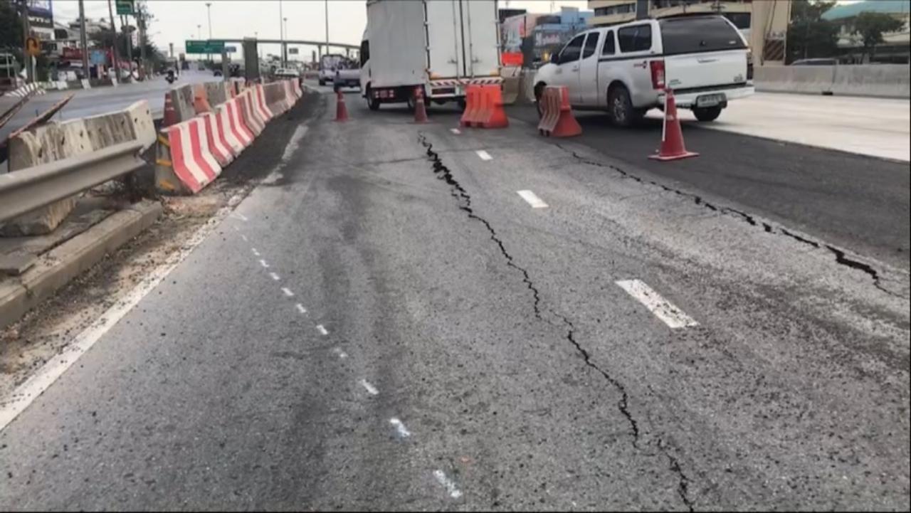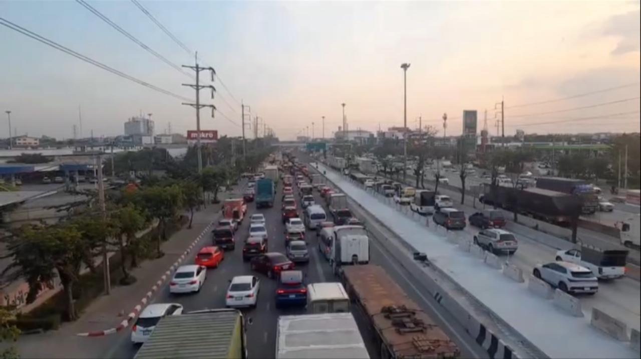 ถนนกาญจนาภิเษก ฝั่งมุ่งหน้าต่างระดับพระราม 2 ชำรุดทรุดตัว คล้ายแอ่งกระทะขนาดใหญ่ ส่งผลรถติดยาวเหยียดถึง อ.บางใหญ่ จ.นนทบุรี ระยะทางกว่า 10 กิโลเมตร