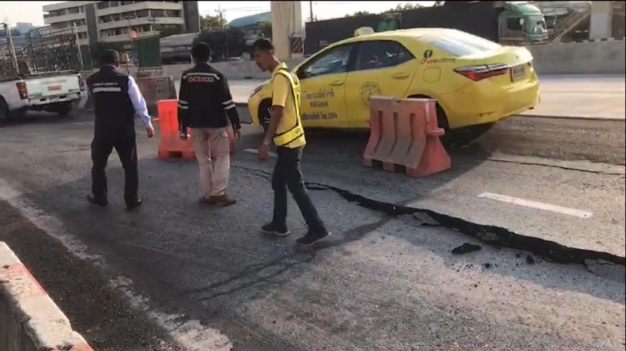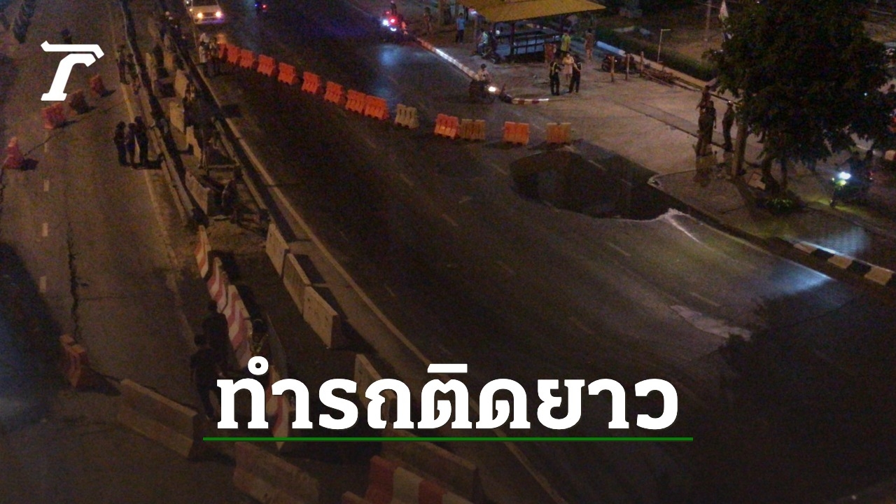 ที่เกิดเหตุเป็นถนน 3 เลนในช่องทางคู่ขนาน โดยพบว่าถนนทั้ง 3 เลน เกิดการทรุดตัวลงประมาณ 60-70 เซนติเมตร ระยะทางประมาณ 100 เมตร ลักษณะคล้ายแอ่งกระทะขนาดใหญ่ เจ้าหน้าที่ตำรวจ จราจร สน.ท่าข้าม ทำการปิดการจราจรถนนฝั่งคู่ขนานทั้งหมด ทำให้เหลือช่องจราจรเพียง 1 ช่องในช่องทางด่วน ก่อให้เกิดการจราจรติดขัดยาวเหยียดถึง อ.บางใหญ่ จ.นนทบุรี ระยะทางกว่า 10 กม.