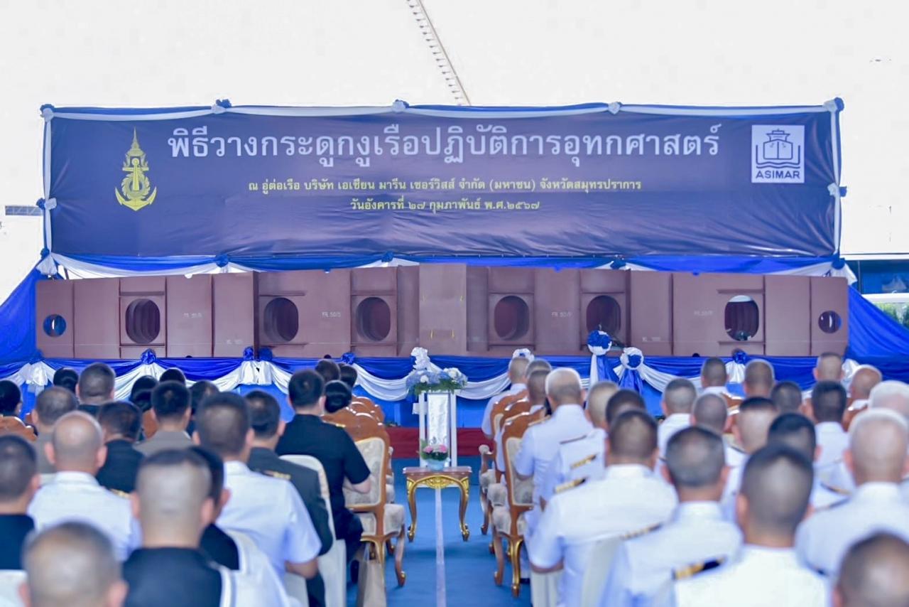 เมื่อวันที่ 28 ก.พ. 67 พล.ร.อ.อะดุง พันธุ์เอี่ยม ผู้บัญชาการทหารเรือ เป็นประธานในพิธีวางกระดูกงูเรือปฏิบัติการอุทกศาสตร์ ณ อู่ต่อเรือ บริษัท เอเชียน มารีน เซอร์วิสส์ จำกัด (มหาชน) อำเภอพระสมุทรเจดีย์ จังหวัดสมุทรปราการ พร้อมด้วย คุณกีรตา พันธุ์เอี่ยม นายกสมาคมภริยาทหารเรือ โดยมี พล.ร.ท.ไพศาล ชะโนภาษ รองเสนาธิการทหารเรือ ในฐานะประธานกรรมการบริหารโครงการจัดหาเรือปฏิบัติการอุทกศาสตร์ ให้การต้อนรับ และกล่าวรายงานวัตถุประสงค์ของการจัดหาเรือในครั้งนี้