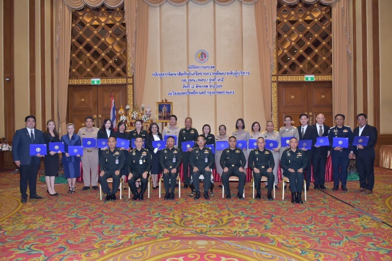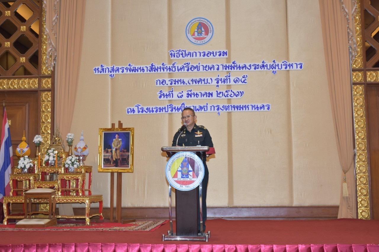 เมื่อวันที่ 10 มี.ค. 67 ที่ห้องปรินซ์บอลรูม 2 ชั้น 11 โรงแรมปรินซ์พาเลซ พล.ท.อนุชา ชุ่มคำ ผู้อำนวยการสำนักกิจการมวลชนและสารนิเทศ กอ.รมน. เป็นประธานพิธีปิดการอบรมหลักสูตรพัฒนาสัมพันธ์เครือข่ายความมั่นคงระดับผู้บริหาร (พคบ.) รุ่นที่ 15 พร้อมมอบเกียรติบัตร และประดับเข็มเครื่องหมาย กอ.รมน. ให้แก่ผู้สำเร็จการอบรมจำนวน 80 คน โดยมีคณะผู้บริหารระดับและหัวหน้าหน่วยขึ้นตรง กอ.รมน. เข้าร่วมพิธีฯ