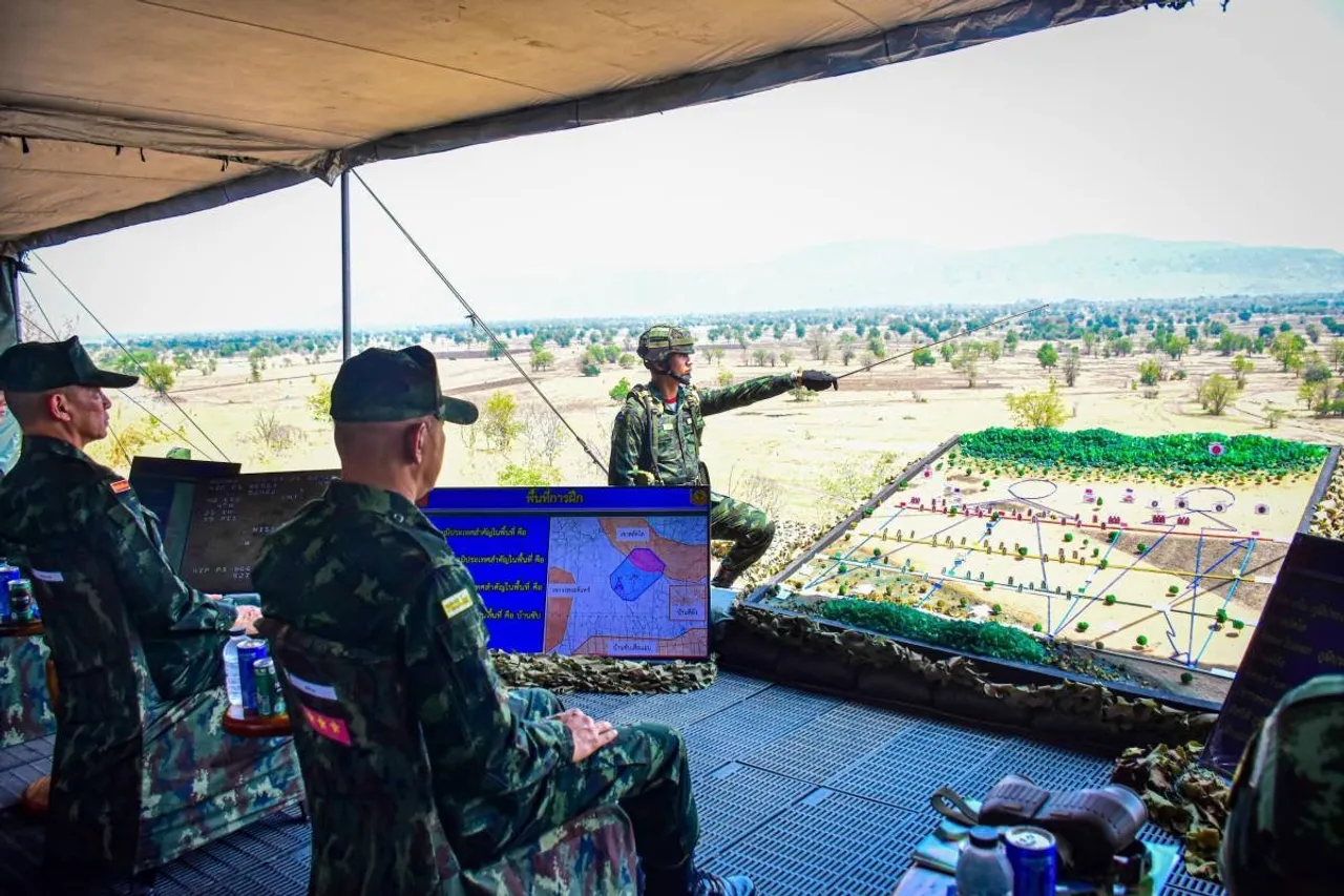 จากนั้น แม่ทัพภาคที่ 1 และคณะได้เดินทางไปยังสนามปฏิบัติการทางน้ำ เยี่ยมชมการสาธิตการปฏิบัติการร่วมระหว่างชุดปฏิบัติการหน่วยทหารขนาดเล็กและกองร้อยลาดตระเวนระยะไกลที่ 9 ในภารกิจค้นหาและโจมตีขบวนการลักลอบขนยาเสพติดทางน้ำ และเดินทางไปยังสนามฝึกทางยุทธวิธีอินทรีทอง กองพลทหารราบที่ 9 เพื่อตรวจเยี่ยมความพร้อมหน่วย ในการเตรียมกำลังกองร้อยเตรียมพร้อม กองพันพร้อมรบเคลื่อนที่เร็ว และกรมทหารราบราบเฉพาะกิจ ของกองทัพภาคที่ 1
