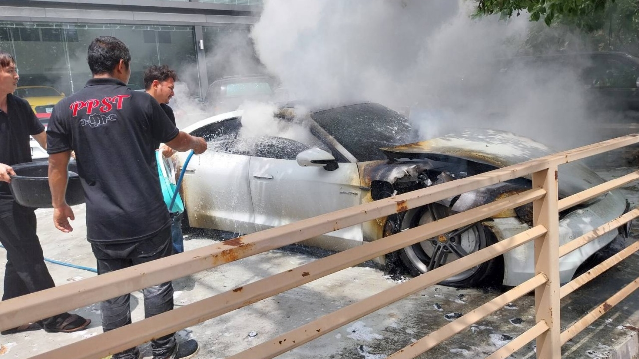 พบรถปอร์เช่ รุ่นไทคานน์ สีขาว ไม่ทราบทะเบียน ราคาประมาณ 10 ล้านบาท โดยเพลิงลุกไหม้บริเวณห้องเครื่องและลุกลามเข้ามาในบริเวณตัวรถได้รับความเสียหาย เจ้าหน้าที่ใช้น้ำทำการดับ
