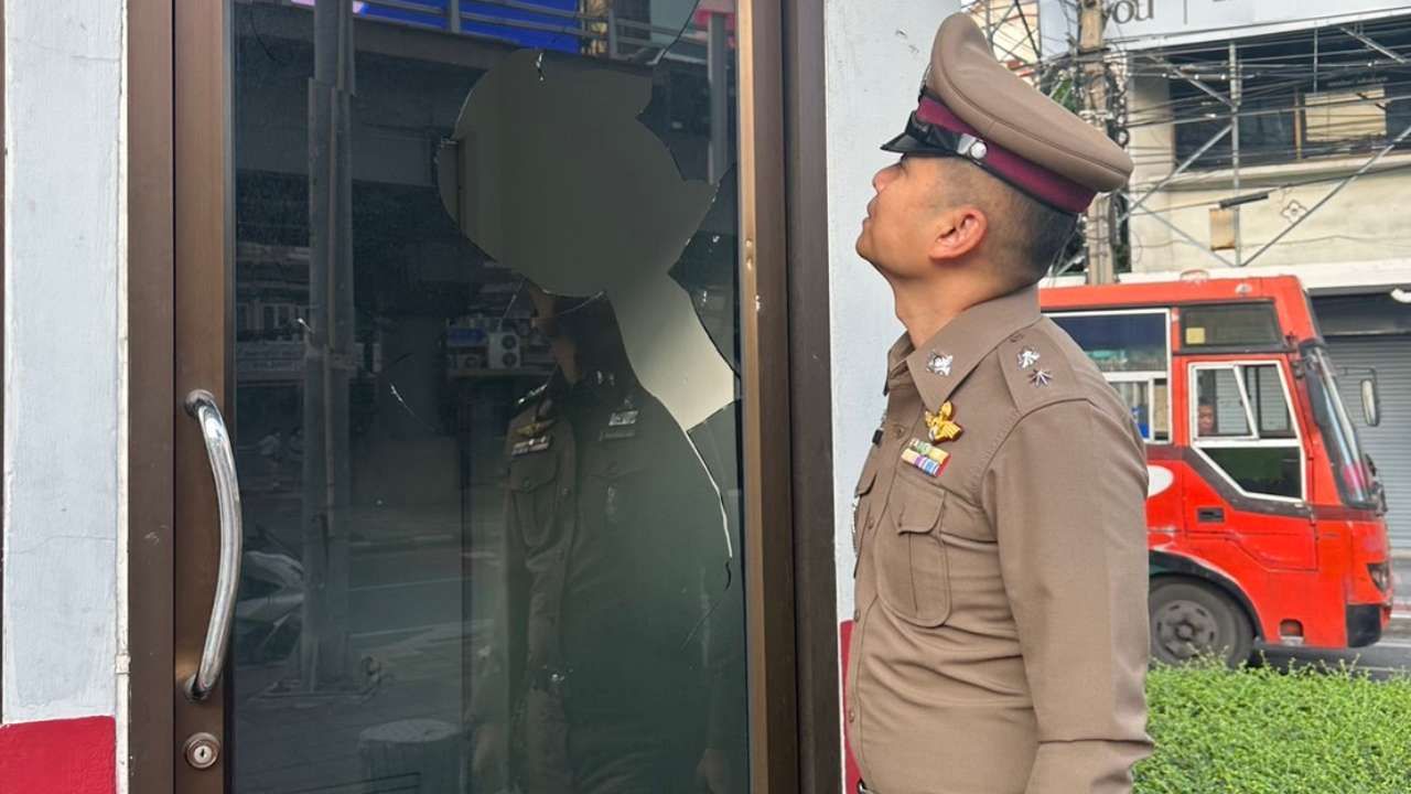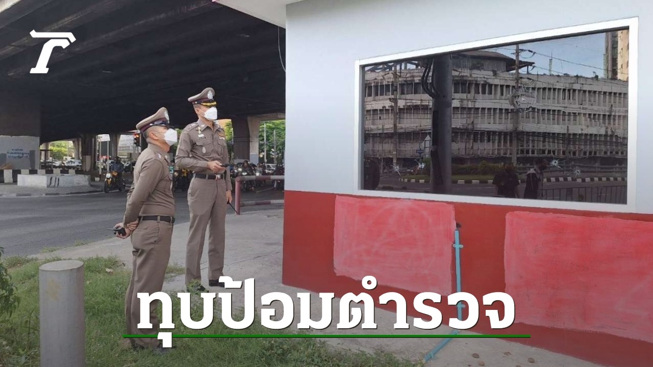 เย้ยตำรวจ ป้อมจราจรดินแดง พญาไท ถูกมือดีบุกทุบกระจกแตก 4 จุด ก้อนหินเกลื่อนพื้น ตร.เข้าตรวจสอบ รวบรวมพยานหลักฐาน เพื่อหาตัวคนก่อเหตุมาดำเนินคดี