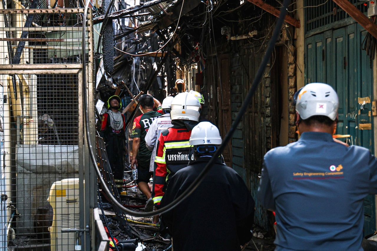 ขณะเดียวกัน เมื่อเวลา 10.30 น. เจ้าหน้าที่กองพิสูจน์หลักฐานได้ลงพื้นที่จุดเกิดเหตุ เพื่อทำการเก็บหลักฐานและตรวจพิสูจน์หาสาเหตุของเพลิงไหม้ครั้งนี้ แต่การทำงานเป็นไปด้วยความยากลำบาก เนื่องจากสภาพที่เกิดเหตุมีเพลิงไหม้อยู่คาซากปรักหักพังและบางจุดยังต้องใช้น้ำดับอยู่