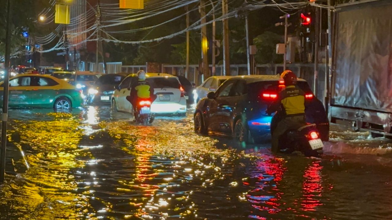 "ฝนถล่ม กทม." ตกนานกว่า 2 ชั่วโมง ส่งผลทำให้หลายพื้นที่มีน้ำท่วมขัง ถนนหลายสายจม เช่น "ลาดพร้าว-วังหิน, เสนา และแยกเกษตร" บางจุดรถเล็กไม่สามารถสัญจรได้ "รถยนต์-จยย." เครื่องดับ ทำการจราจรติดหนึบ