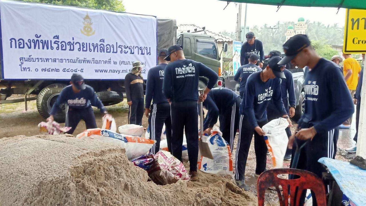 ทั้งนี้ ในส่วนของกองทัพเรือภาคที่ 2 ได้จัดชุดเคลื่อนที่เร็วออกสำรวจพื้นที่เสี่ยงต่อการเกิดน้ำท่วมฉับพลันในช่วงฤดูมรสุม พร้อมดำเนินการประชาสัมพันธ์ช่องทางการขอรับการช่วยเหลือให้แก่ประชาชนในพื้นที่ได้รับทราบ นอกจากนั้น ยังได้จัดกำลังพลเร่งบรรจุกระสอบทรายเพื่อเตรียมความพร้อมให้ความช่วยเหลือประชาชนในพื้นที่น้ำท่วมขัง