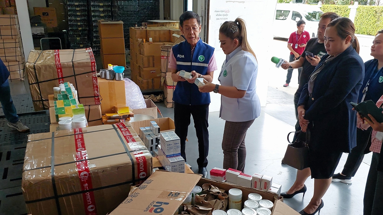 นพ.วิทิต สฤษฎีชัยกุล รองเลขาธิการ อย.กล่าวว่า สืบเนื่องจากเจ้าหน้าที่สำนักงานอาหารและยา (อย.) ตรวจสอบร้านขายยาในพื้นที่ต่างๆในพื้นที่กรุงเทพมหานคร พบยาทรามาดอล (Tramadol) หรือยาเเก้ปวด ซึ่งมีเลขทะเบียนยาที่เเจ้งไม่ตรงกับวัตถุประสงค์ในการจัดจำหน่าย โดยแจ้งว่าใช้สำหรับจำหน่ายต่างประเทศ แต่พบว่าลักลอบจำหน่ายภายในประเทศ จึงตรวจสอบจนมาพบสถานที่ดังกล่าว เบื้องต้นพบว่า บริษัทนี้อยู่ในเนื้อที่ประมาณ 1 ไร่ ส่วนหน้าเป็นออฟฟิศ ด้านในมี 2 โกดัง โกดังแรกเป็นโกดังสำหรับเก็บสินค้าใส่กล่อง บรรจุภัณฑ์เพื่อส่งขาย ตรวจสอบพบยาทรามาดอลบรรจุใส่ขวดอยู่ในกล่องลังพร้อมจัดส่งประมาณ 2.7 ล้านเม็ด ยาฟอร์มาลดีไฮด์กว่า 20,000 ขวด และยารักษาโรคหย่อนสมรรถภาพทางเพศ หรือ Tadalafil (ทาดาลาฟิล) 2,900 ขวด