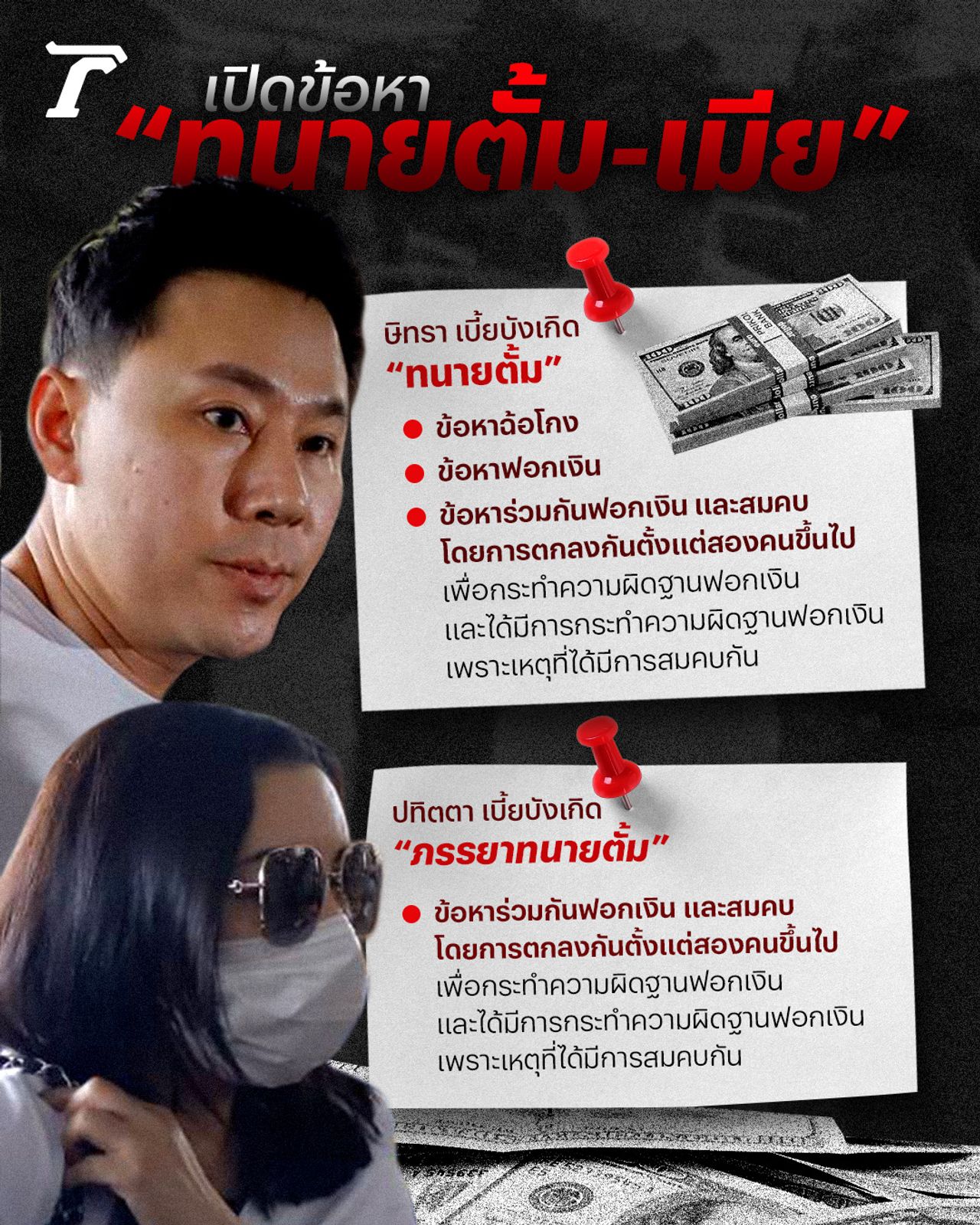 เปิดข้อหาจับ "ทนายตั้ม-เมีย" พบหลักฐานว่ามีส่วนเกี่ยวข้องคดีร่วมกันฟอกเงิน และสมคบฟอกเงิน