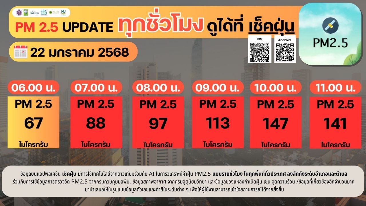 เวลา 10.00 น. ค่าฝุ่น PM 2.5 อยู่ที่ 147 ไมโครกรัม