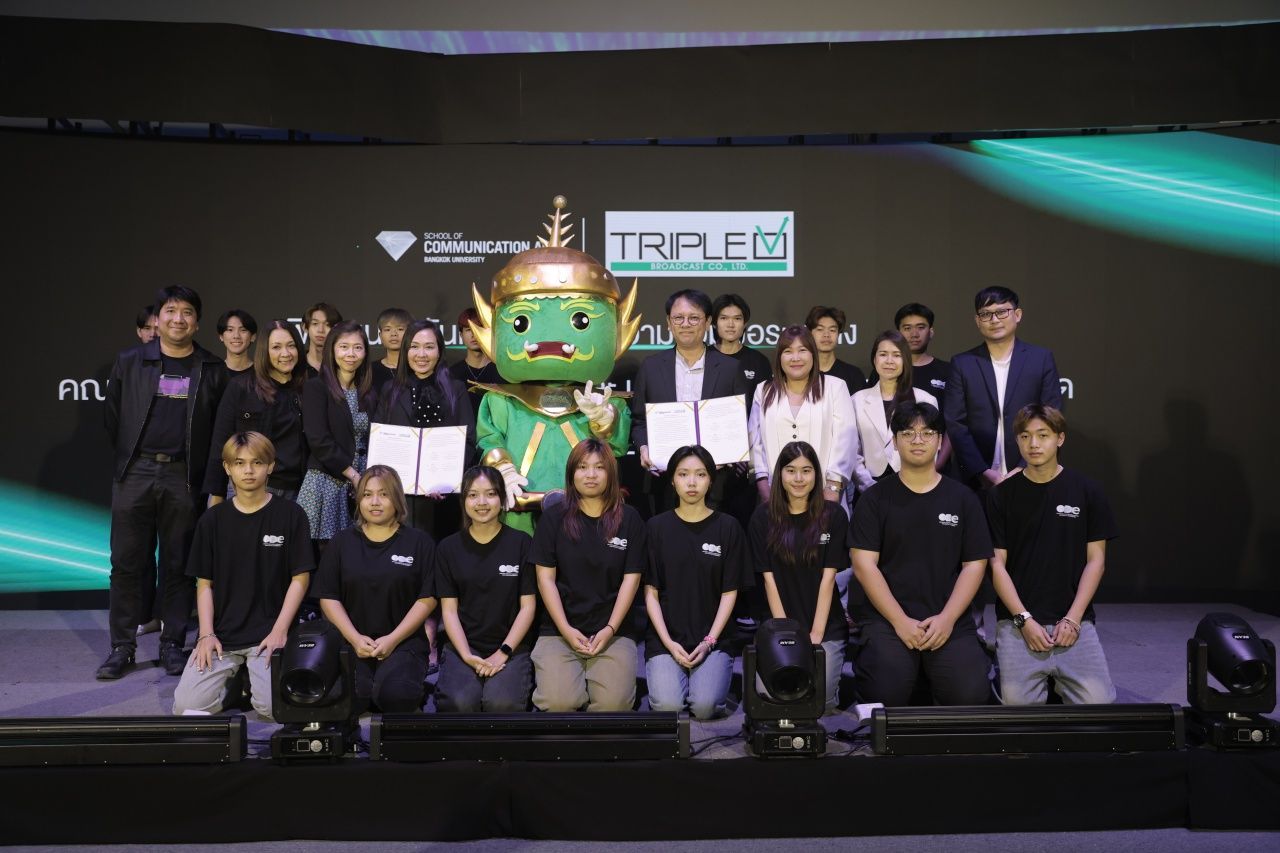 โดยมี ผู้ช่วยศาสตราจารย์ ดอกเตอร์ อริชัย อรรคอุม คณบดีคณะนิเทศศาสตร์ มหาวิทยาลัยกรุงเทพ และ คุณธัญปัฐณ์ เรืองจรัส เจ้าหน้าที่บริหารสายงานทรัพยากรบุคคล จากบริษัท ทริปเปิล วี บรอดคาสท์ จำกัด เป็นตัวแทนลงนามบันทึกข้อตกลงความร่วมมือ