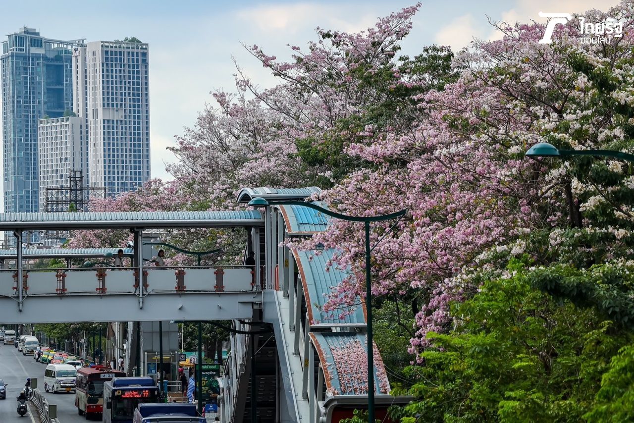 วันที่ 13 มี.ค. 68 เป็นประจำทุกปีที่ต้นชมพูพันธุ์ทิพย์บริเวณริมถนนกำแพงเพชร เขตจตุจักร จะเริ่มบานสะพรั่งสวยงามรับหน้าร้อน ซึ่งจุดที่สามารถชมดอกชมพูพันธุ์ทิพย์ได้อย่างสวยงาม คือ บริเวณบนสถานีรถไฟฟ้าบีทีเอสหมอชิต โดยจะสามารถเห็นดอกชมพูพันธุ์ทิพย์เบ่งบานเรียงรายขนานไปกับแนวถนนพหลโยธิน เป็นสีชมพูสวยงาม ตัดกับท้องฟ้าสีฟ้า