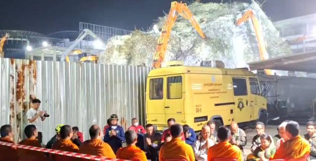 ทั้งนี้เมื่อเวลา 01.39 น. วันที่ 9 เม.ย. มีพระจากวัดพระเชตุพนวิมลมังคลารามราชวรมหาวิหาร หรือวัดโพธิ์ และพระวัดระฆังโฆสิตารามวรมหาวิหาร รวม 9 รูป เดินทางมาที่บริเวณอาคารกำลังก่อสร้างสำนักงานการตรวจเงินแผ่นดิน (สตง.) แห่งใหม่ถล่ม เพื่อทำพิธีสวดมนต์ขอขมาเจ้าที่เจ้าทางเปิดทางให้พบผู้ประสบภัย มีทีมกู้ภัยของมูลนิธิร่วมกตัญญูและทีมกู้ภัยที่เกี่ยวข้องร่วมทำบุญถวายปัจจัย ภายหลังพระทุกรูปถวายปัจจัยให้กับโรงครัวมูลนิธิร่วมกตัญญูต่อไป