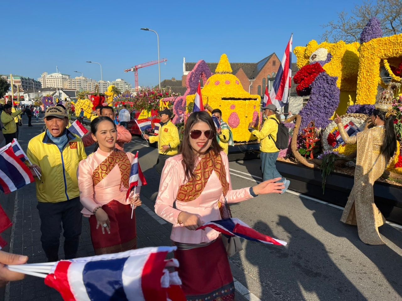 สำหรับประเทศไทยปีนี้ นายกัมพล ตันสัจจา ประธานสวนนงนุช พัทยา จ.ชลบุรี ได้ส่งขบวนรถพาเหรดเข้าร่วมเป็นปีที่ 4 ภายใต้แนวคิด "เสน่ห์แห่งสยาม" ประกอบด้วยสัญลักษณ์สำคัญ ได้แก่ รถตุ๊กตุ๊ก เจดีย์ พญานาค และช้าง ให้ทางอาสาสมัครของเนเธอร์แลนด์ตกแต่งตามแบบที่สวนนงนุชส่งมาให้ โดยใช้ดอกไม้พื้นถิ่นหลากหลายสีของประเทศเนเธอร์แลนด์ตกแต่ง เช่น ดอกทิวลิป, ดอกไฮยาซินธ์ และดอกแดฟโฟดิล ซึ่งไม่เพียงแสดงถึงความวิจิตรของธรรมชาติในภูมิภาคนี้ แต่ยังสะท้อนถึงมิตรภาพและความร่วมมืออันดีระหว่างประเทศไทยกับเนเธอร์แลนด์อย่างแท้จริง โดยมีพนักงานสวนนงนุชแต่งชุดไทยทั้งชายและหญิงร่วมขบวนด้วย