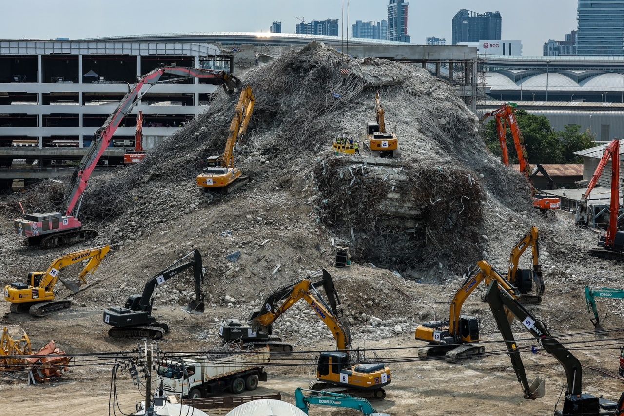 ความคืบหน้าเมื่อเวลา 10.00 น. วันที่ 18 เม.ย. 68 เจ้าหน้าที่กู้ภัย USAR เตรียมกู้ร่างผู้สูญหายที่เสียชีวิตบริเวณโซน B โดยมีนายชัชชาติ สิทธิพันธุ์ ผู้ว่า กทม. ติดตามการปฏิบัติงานอย่างใกล้ชิด