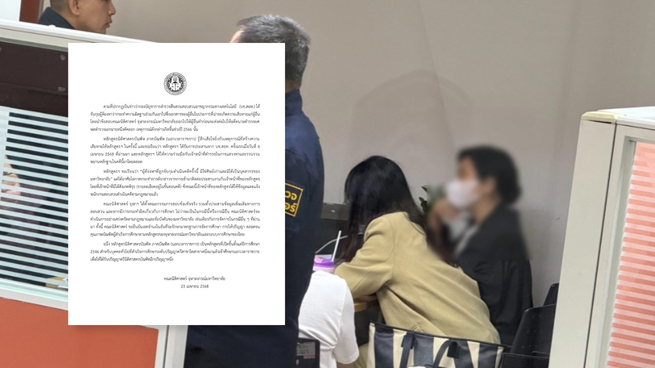 โดยระบุว่า ตามที่ปรากฏเป็นข่าวว่ากองบัญชาการตำรวจสืบสวนสอบสวนอาชญากรรมทางเทคโนโลยี (บช.สอท.) ได้จับกุมผู้ต้องหาว่ากระทำความผิดฐานร่วมกันเอาไปซึ่งเอกสารของผู้อื่นในประการที่น่าจะเกิดความเสียหายแก่ผู้อื่น โดยนำข้อสอบคณะนิติศาสตร์ จุฬาลงกรณ์มหาวิทยาลัยออกไปให้ผู้อื่นทำก่อนจะส่งต่อไปให้อดีตนายตำรวจยศพลตำรวจเอกนายหนึ่งคัดลอก เหตุการณ์ดังกล่าวเกิดขึ้นช่วงปี 2566 นั้น