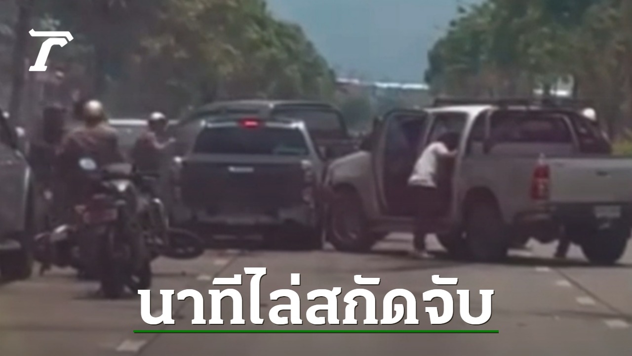 นาทีระทึก ตร.สายไหม ไล่สกัดจับ "กระบะแต่งซิ่ง" ต้องสงสัย ขับหลบหนี-ชนดะ 4 คันรวด ก่อนตามจับคนขับได้ ค้นเจอยาเค 400 กรัม ด้านพลเมืองดี เล่าเหตุขณะขับรถเข้าช่วย