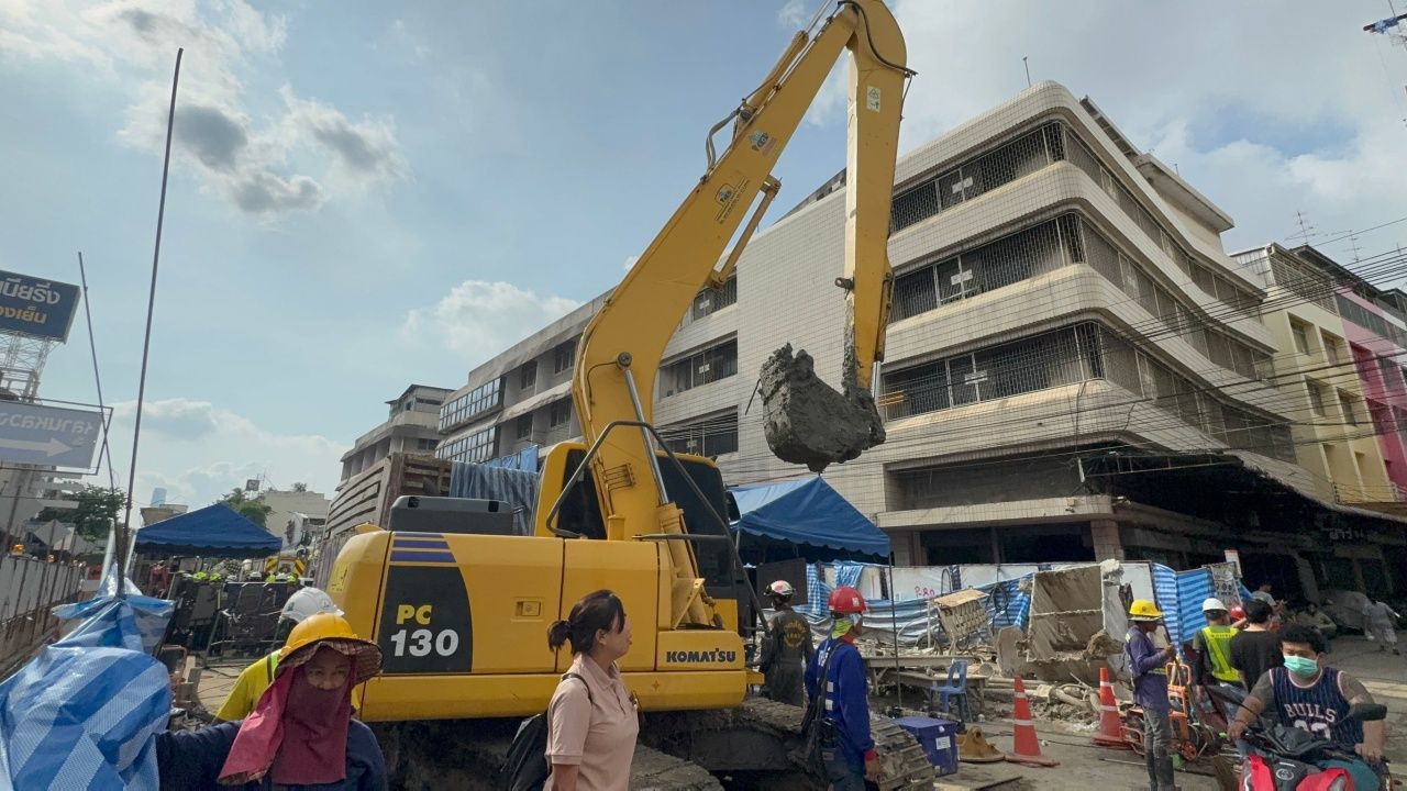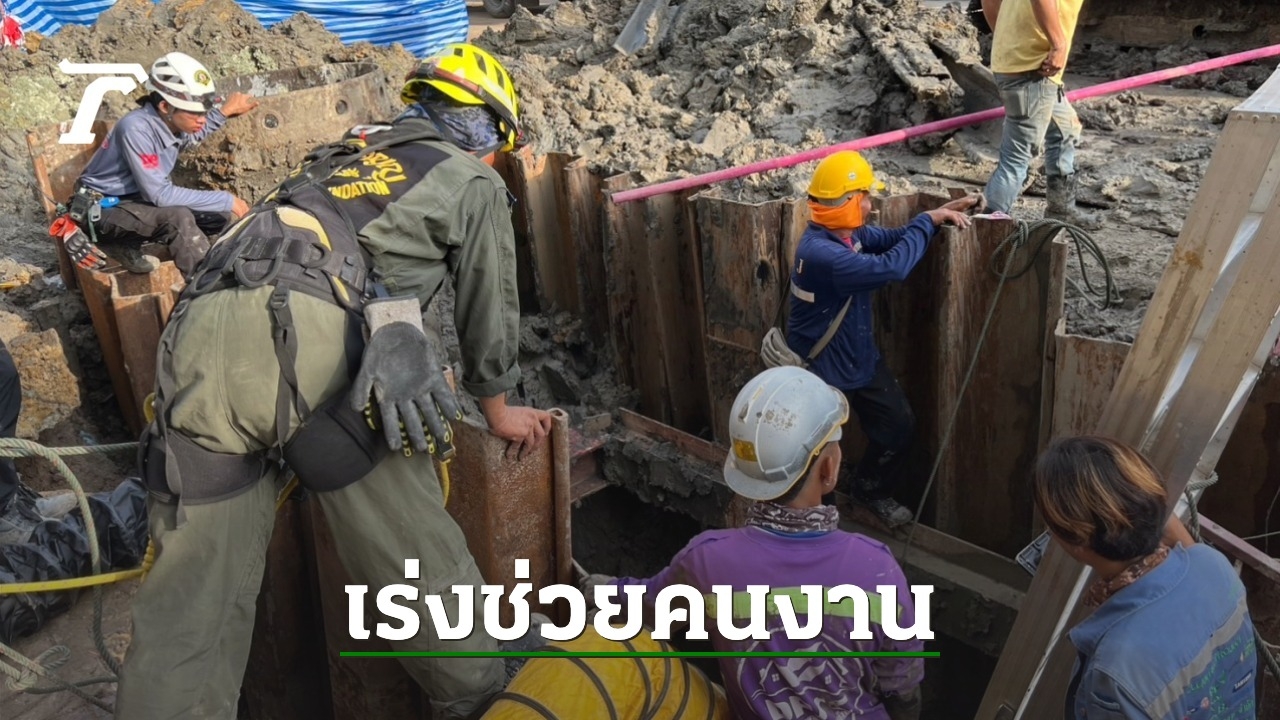 เจ้าหน้าที่เร่งช่วยเหลือคนงานเจาะเสาเข็มตกหลุมลึกจุดสร้างรถไฟฟ้าใต้ดิน เจ้าหน้าที่เตรียมปรับแผนย้ายตำแหน่งแบ็กโฮ ตั้งเป้าเจาะให้ได้ 15 เมตร คาดใกล้จุดตัวผู้ประสบภัย