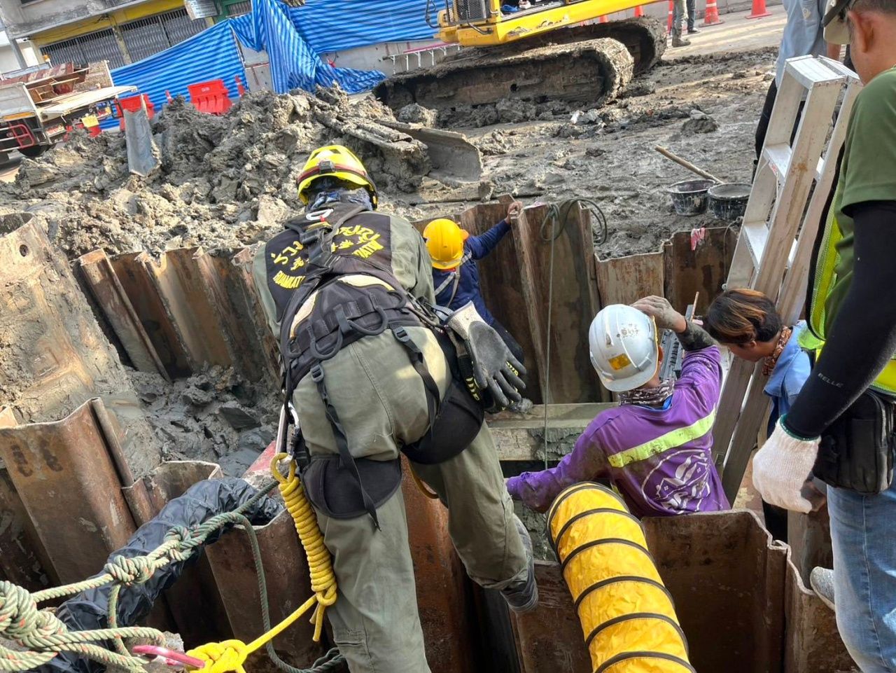 นายชัชชาติ สิทธิพันธุ์ ผู้ว่าฯ กทม. พร้อมด้วย นายสุริยชัย รวิวรรณ ผู้อำนวยการสำนักป้องกันและบรรเทาสาธารณภัย กรุงเทพมหานคร (ผอ.ปภ.กทม.) และนายเพ็ชร ภุมมา ผู้อำนวยการเขตป้อมปราบศัตรูพ่าย ลงพื้นที่เกิดเหตุพูดคุยแผนการปฏิบัติงานกับทีมวิศวกรในไซต์ก่อสร้าง พร้อมดูการปฏิบัติงานของเจ้าหน้าที่ในการค้นหานายดาวคนงานที่พลัดตกลงไปในหลุม ให้ทันภายในกรอบเวลา 72 ชั่วโมง