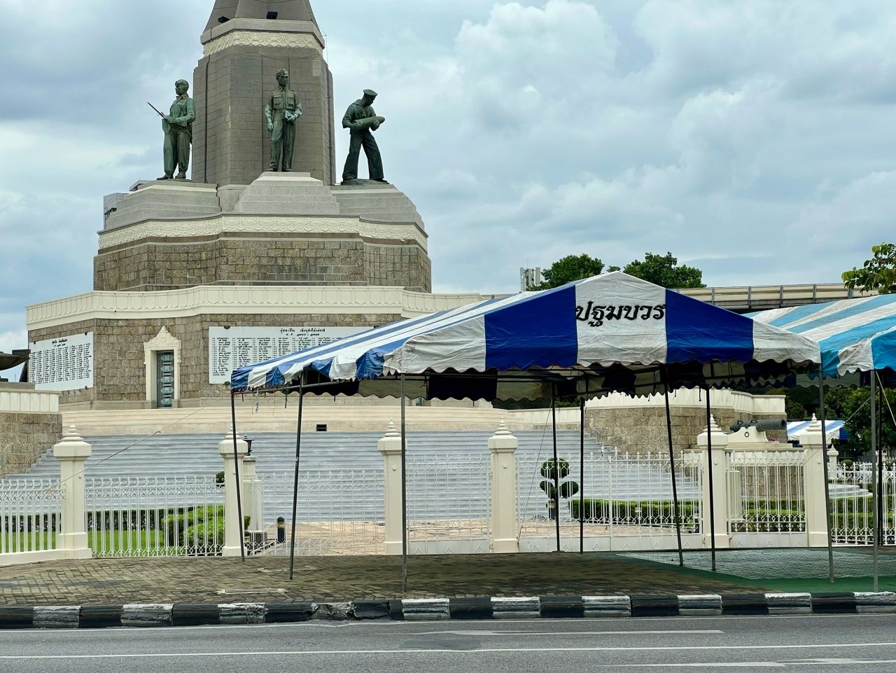 โดยเวทีใหญ่ ตั้งหันหน้าเข้าไปทางเกาะดินแดง หรือฝั่งสถานีรถไฟฟ้าบีทีเอสสนามเป้า แต่ยังไม่มีความเคลื่อนไหวใดๆ พบเพียงอุปกรณ์ที่ถูกนำมาติดตั้งเอาไว้ล่วงหน้า