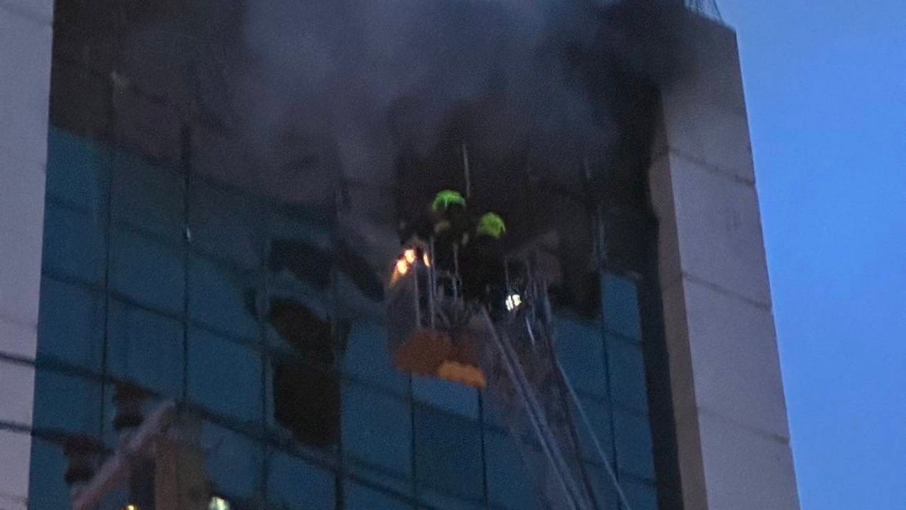 ที่เกิดเหตุเป็นอาคารสูง 7 ชั้น พบแสงเพลิงไหม้รุนแรง บริเวณชั้นที่ 6 ซึ่งเป็นสำนักงานฯ ส่วนบริเวณชั้น 1-5 เป็นที่พักอาศัย จึงอพยพผู้พักอาศัยออกจากตัวอาคารดังกล่าว ก่อนใช้เครนยกกระเช้าฉีดน้ำ ประมาณ 20 นาที จึงควบคุมเพลิงไว้ได้