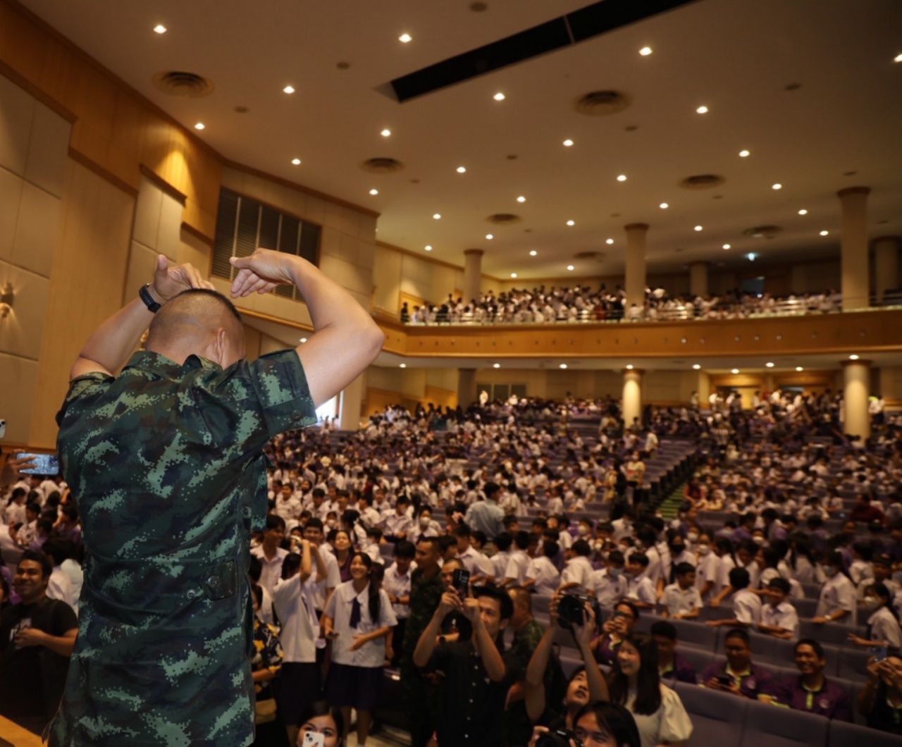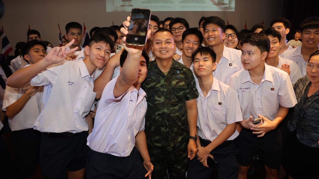 แม่ทัพภาค 2 บรรยายพิเศษที่ รร.สาธิต ม.เกษตรฯ เผย "ในหลวง" องค์จอมทัพไทย ทรงห่วงใยสอบถามสถานการณ์ทุกวัน ลั่นไม่เคยเหนื่อยกับการทำหน้าที่เพื่อประเทศชาติและแผ่นดิน ปกป้องอธิปไตย เพื่อขับไล่ศัตรูออกจากแผ่นดินใหญ่ให้รวดเร็ว