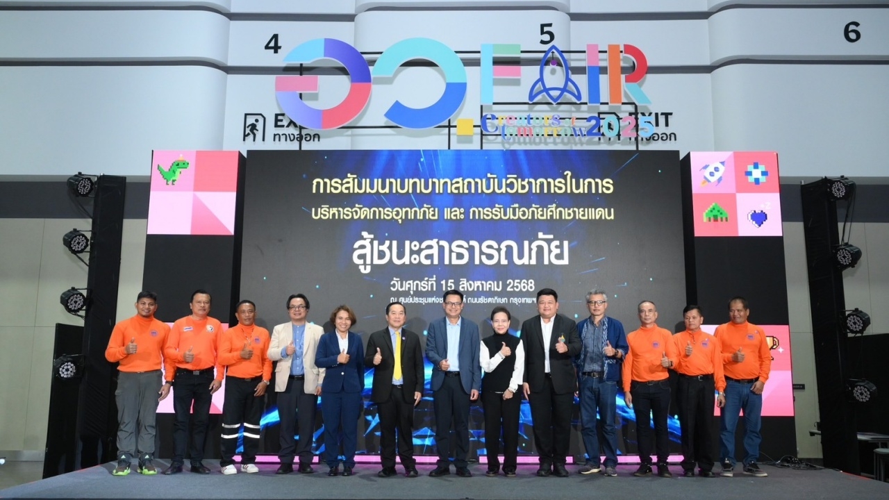 คณาจารย์ นักวิจัยจากหลายมหาวิทยาลัย ร่วมกับ บพท. เปิดเวทีในงาน อว.แฟร์ แลกเปลี่ยนชุดความรู้ ประสบการณ์ในการบริหารจัดการภัยพิบัติ และภัยจากการสู้รบ พร้อมส่งมอบเรือกู้ภัยอัจฉริยะ นวัตกรรมจากภูมิปัญญานักวิจัยไทย 6 ลำ ให้ศูนย์จัดการภัยพิบัติเพื่อนพึ่ง (ภาฯ) จัดสรรใช้ประโยชน์ในการกู้ภัย ใน 6 พื้นที่ 6 จังหวัด