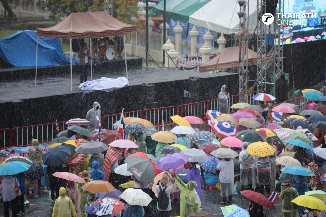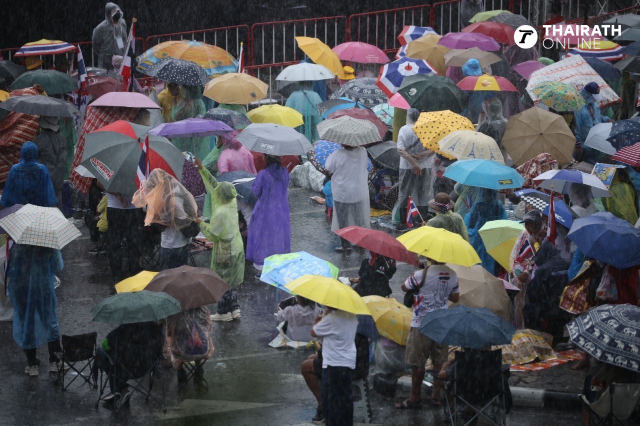 ล่าสุด เมื่อเวลาประมาณ 15.00 น. พบว่า บริเวณจุดชุมนุมได้มีฝนตกลงมาอย่างหนัก ซึ่งทางกลุ่มผู้ชุมนุมได้นำร่มขึ้นมากาง บางส่วนได้สวมเสื้อกันฝน ขณะที่บนเวทีทางแกนนำยังคงปราศรัยต่อ โดยคาดว่าจะจบกิจกรรมในเวลาประมาณ 21.30 น.