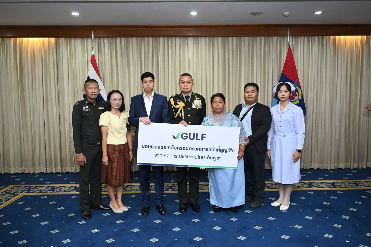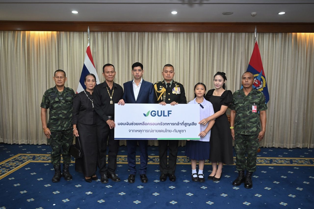 GULF มุ่งมั่นที่จะเป็นส่วนหนึ่งในการขับเคลื่อนสังคมไทยให้เติบโตอย่างยั่งยืนในทุกมิติ โดยเชื่อว่าความมั่นคงของชาติจะเป็นรากฐานสำคัญที่ทำให้ประเทศไทยก้าวไปข้างหน้าได้อย่างแข็งแกร่ง นอกจากภารกิจมอบเงินช่วยเหลือแล้ว GULF ยังคงเดินหน้าช่วยเหลือทหารที่บาดเจ็บและเสียชีวิตจากภารกิจความมั่นคงในพื้นที่ชายแดนอย่างต่อเนื่อง ทั้งการมอบถุงยังชีพ "GULF Care" จำนวนกว่า 2,000 ชุด แก่ทหารและประชาชนที่ได้รับผลกระทบในศูนย์พักพิงตามจังหวัดต่าง ๆ การสนับสนุนงบประมาณให้ศูนย์พักพิง รวมถึงการผนึกกำลังกับบริษัทในเครือ เพื่อนำเทคโนโลยีด้านการสื่อสารและดาวเทียมมาช่วยอำนวยความสะดวกให้เจ้าหน้าที่ฝ่ายความมั่นคงสามารถสื่อสารได้อย่างมีประสิทธิภาพยิ่งขึ้น