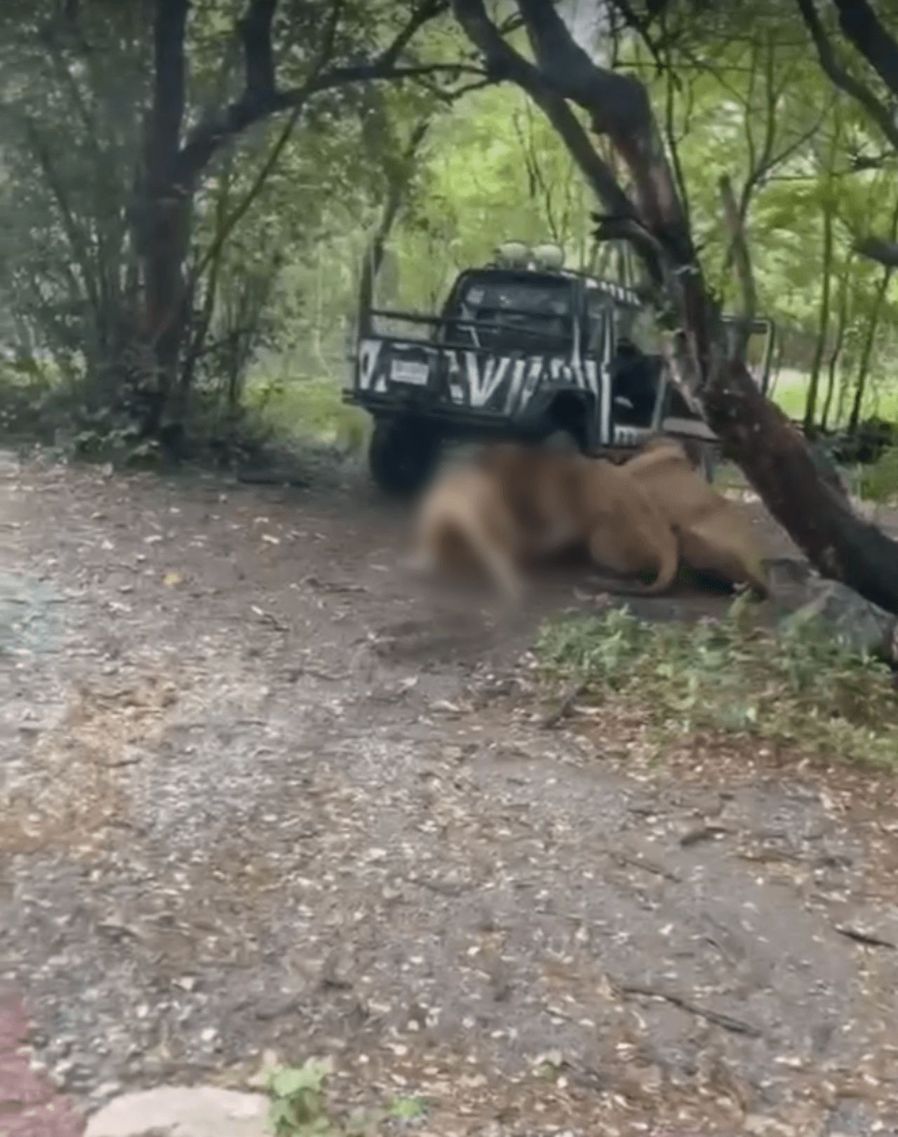 - ขณะเกิดเหตุ ไม่รู้จะต้องทำอย่างไร ทำได้เพียงแต่บีบแตรรถ หวังจะไล่ฝูงสิงโต เช่นเดียวกับนักท่องเที่ยวคันอื่นที่ช่วยกันบีบแตร
