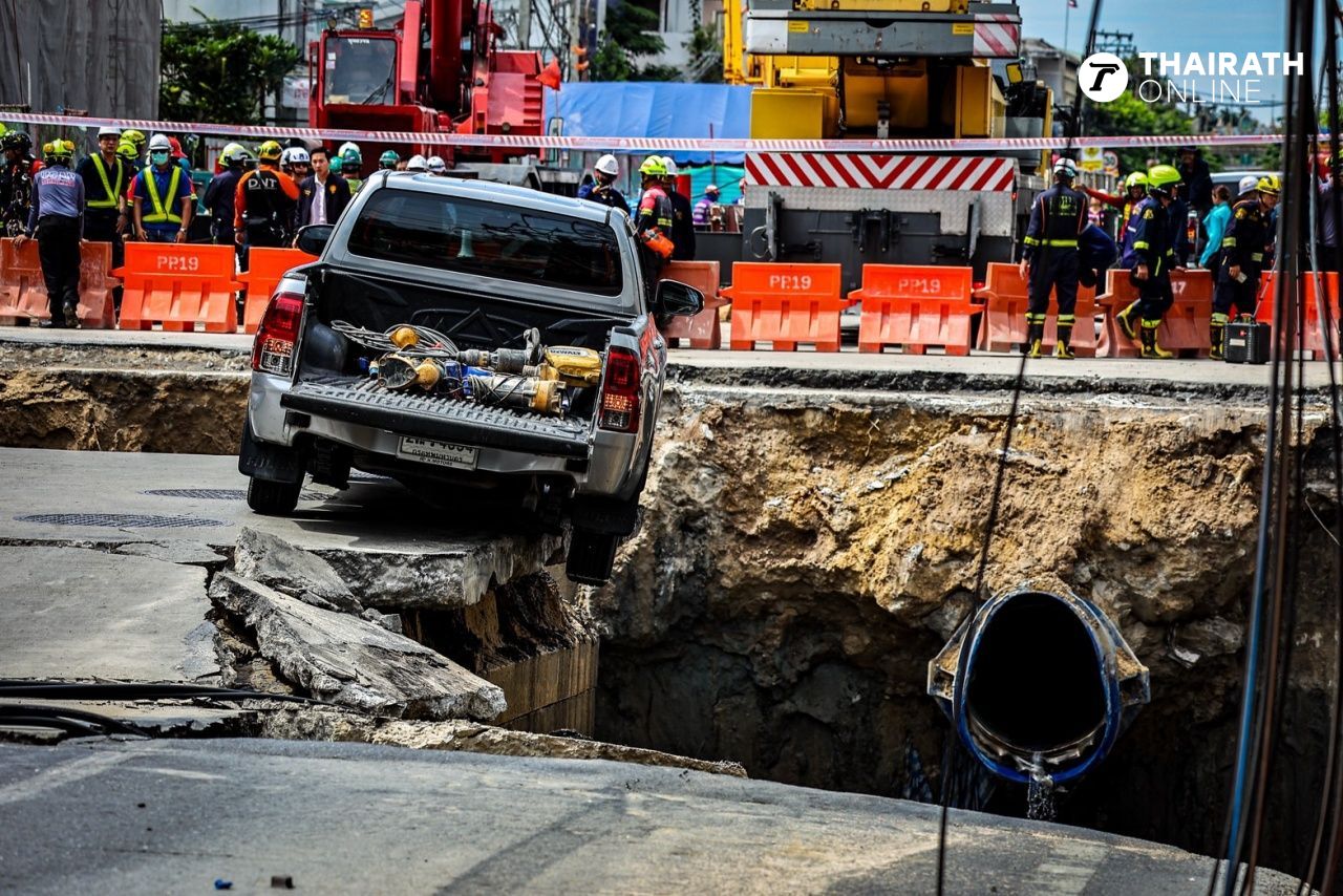 นายชัชชาติ ระบุว่า รัศมีความลึกที่ต้องเฝ้าระวังประมาณ 100 เมตร เนื่องจากหลุมลึก 50 เมตร ส่วนสี่แยกในบริเวณนี้คาดว่าจะเปิดได้ ส่วนอาคารต่างๆ โดยรอบที่ไม่มีกำแพงกันดิน ยังถือว่าเป็นจุดอันตราย หรือจุดเปราะบาง เพราะเราเห็นเสาเข็มเลย