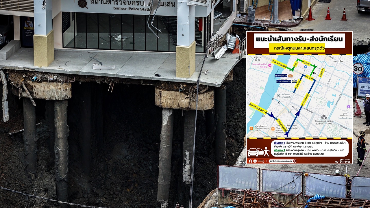 ความคืบหน้าเมื่อเวลา 15.00 น. สถานีตำรวจนครบาลสามเสน ประชาสัมพันธ์เส้นทางรับ–ส่งนักเรียน เนื่องมาจาก ถนนสามเสนทรุดตัว ต้องปิดการจราจรช่วง แยกวชิระ – แยกซังฮี้