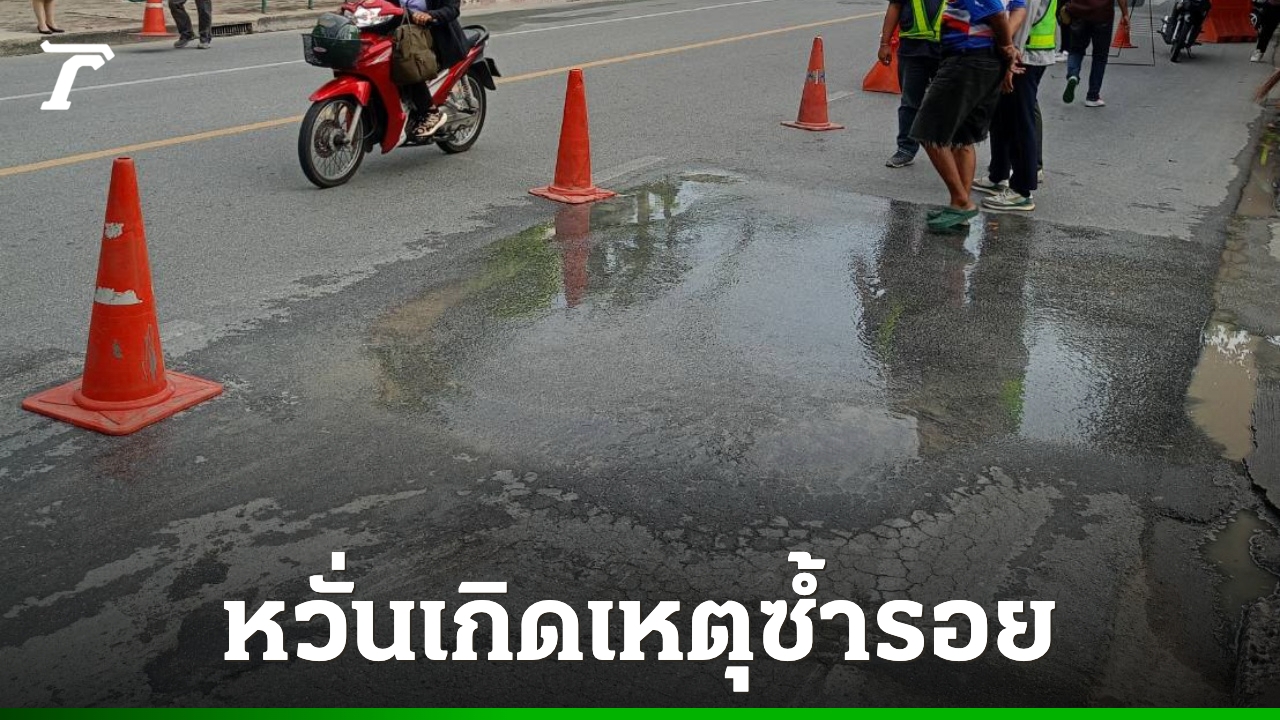เจ้าหน้าที่เข้าตรวจสอบ หลังพบน้ำซึมถนนสามเสน ห่างจุดถนนทรุดตัว 2 กิโลเมตร ชาวบ้านหวั่นเกิดเหตุซ้ำรอยหน้าวชิรพยาบาล