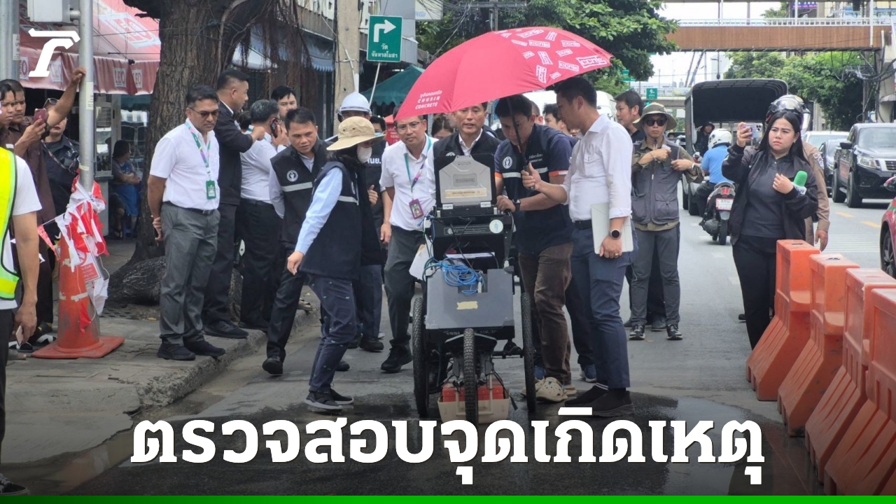 รองผู้ว่าฯ กทม. ลงพื้นที่ตรวจน้ำซึมบนผิวถนนสามเสน ตรงข้ามโรงเรียนวัดจันทรสโมสร เบื้องต้นยืนยัน เป็นคนละเหตุการณ์กับ "ถนนทรุด" หน้าวชิรพยาบาล