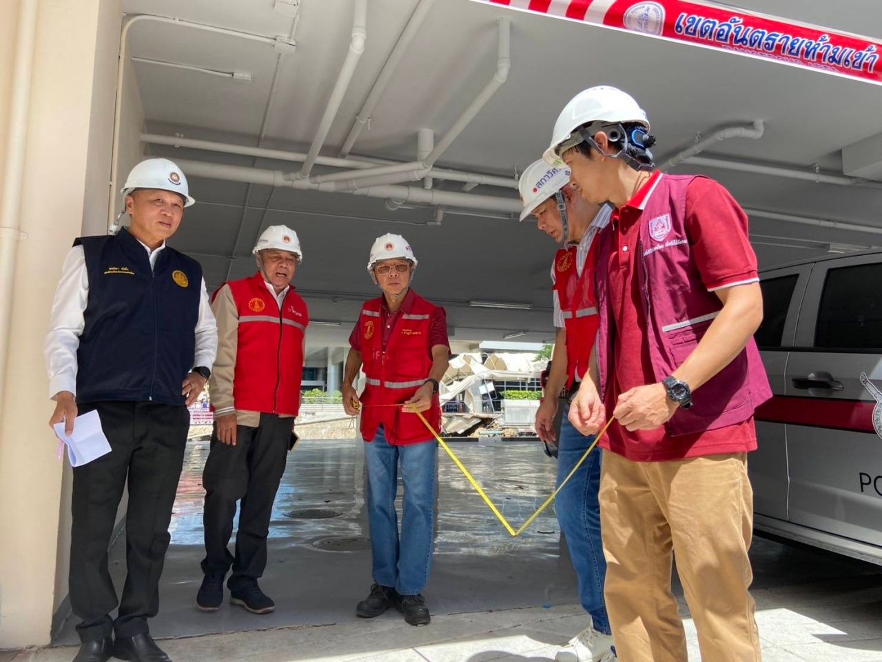 เมื่อเวลา 10.40 น. วันที่ 25 กันยายน 2568 นายพงษ์นรา เย็นยิ่ง อธิบดีกรมโยธาธิการและผังเมือง พร้อมด้วย ผศ. ดร.ธเนศ วีระศิริ ที่ปรึกษาวิศวกรรมสถานแห่งประเทศไทยในพระบรมราชูปถัมภ์ การรถไฟฟ้าขนส่งมวลชนแห่งประเทศไทย หรือ รฟม. ร่วมกันตรวจสอบภายในพื้นที่อาคารที่ทำการ สน.สามเสนใหม่ รวมทั้งแฟลตที่พัก ด้วยการใช้ตลับเมตรวัดระยะรอยแยก เสาค้ำยันอาคาร โครงสร้าง สน. และทุกส่วนที่เกี่ยวข้องกับความปลอดภัย