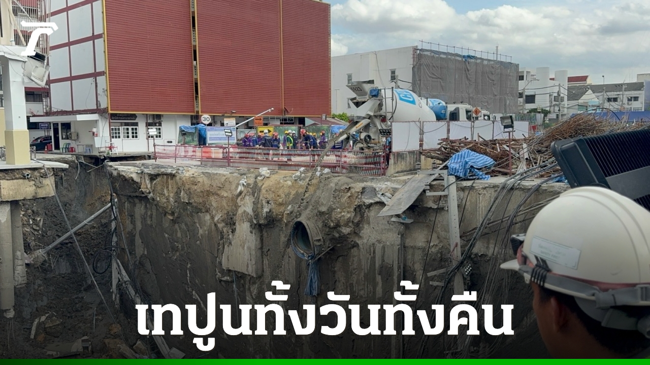 ปภ. เร่งเครื่องเทปูนซีเมนต์ ราว 1.2 พันตัน ปิดรอยรั่วอุโมงค์ ถนนสามเสนทรุดทั้งวันทั้งคืน เพื่อคืนพื้นผิวจราจร คาดใช้เวลาประมาณ 14 วัน ตั้งเครื่องสูบน้ำรอ หากเกิดฝนตก