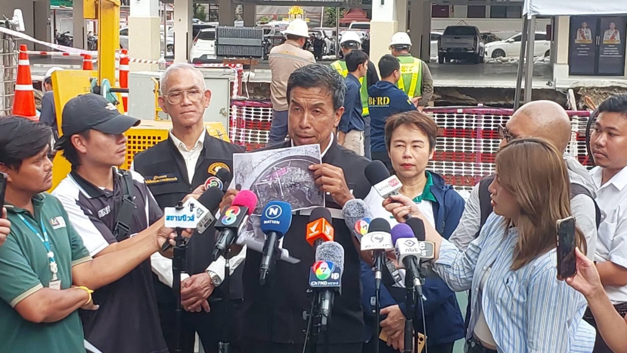 ทั้งนี้ไม่อยากให้กังวลเกี่ยวกับเรื่องวันแล้วเสร็จ ขอให้ทำด้วยความรอบคอบและเรียบร้อย ส่วนตัวคิดว่าสถานการณ์ดีขึ้น ดินมีความเสถียรมากขึ้น ในวันนี้มีพยากรณ์อากาศว่าฝนจะตก แต่โชคดีที่วันนี้ฝนตกหนักแถวลาดกระบัง แต่มีเมฆก้อนหนึ่งกำลังมาแล้ว จึงเตรียมพร้อมเรื่องการสูบน้ำ และทำเขื่อนไว้รอบพื้นที่เพื่อป้องกันน้ำจากผิวดินไหลลงไปในบ่อ