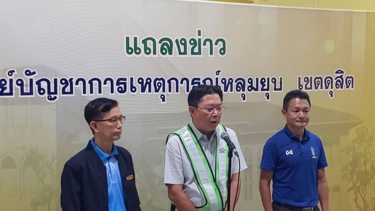 โดย นายเทียนชัย วงศ์สุวรรณ ผู้อำนวยการเขตดุสิต กล่าวว่า วันนี้มีการประชุมกันหลายเรื่อง รวมถึงการวางแผนดำเนินการในวันถัดไป เมื่อวานนี้อธิบดีกรมป้องกันและบรรเทาสาธารณภัยได้ประกาศเขตให้ความช่วยเหลือกรณีผู้ประสบภัยพิบัติกรณีฉุกเฉิน ในพื้นที่แขวงวชิรพยาบาล และแขวงดุสิต ส่วนผู้ประสบภัยยังอยู่ระหว่างติดตามผู้ที่ยังไม่ได้มาลงทะเบียน ยังเหลืออาคารพาณิชย์อีก 9 ห้องที่ยังไม่มาแจ้งความประสงค์ ส่วนห้องเช่ายังขาดอีก 10 แห่ง