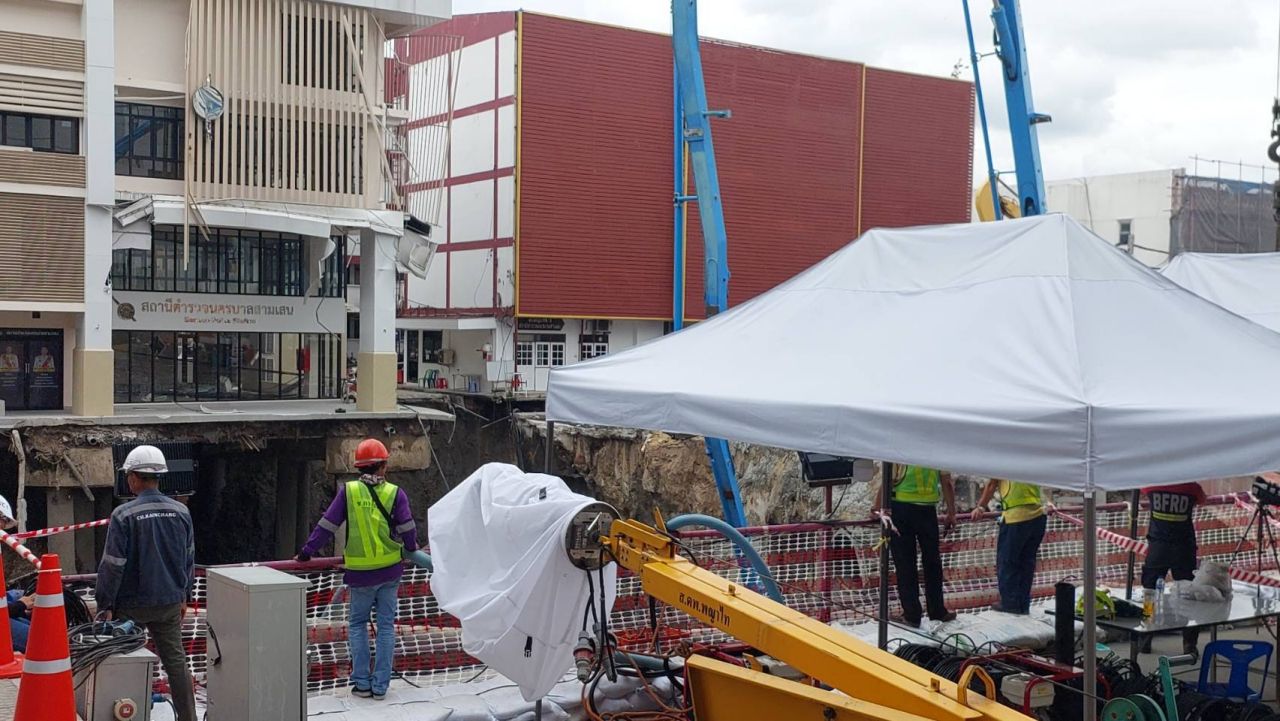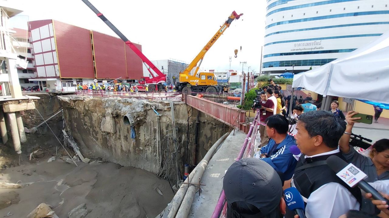 ในส่วนของพื้นด้านใต้สน.สามเสน เพื่อป้องกันการเคลื่อนตัวของดิน หรือป้องกันดินสไลด์ สำหรับแผนงานในวันพรุ่งนี้ (28 ก.ย.68) จะใช้เครนขนาดใหญ่ นำอุปสรรคต่างๆ ทั้งท่อประปา เสาไฟฟ้า เพื่อเคลียร์พื้นที่บริเวณบ่อ จากนั้นจะนำเครื่องจักรขนาดเล็กเข้ามาเคลียร์และถมทรายในขั้นตอนต่อไป
