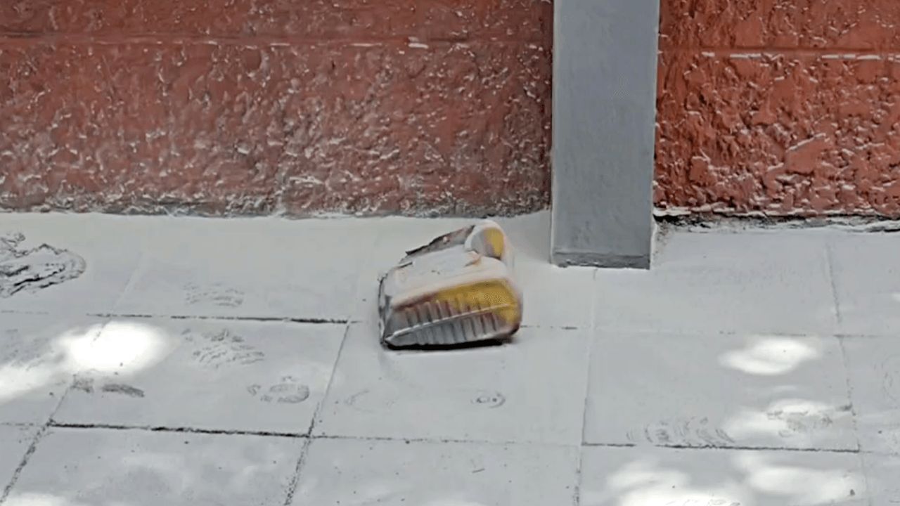 ทีมข่าวได้ลงพื้นที่ตรวจสอบจุดเกิดเหตุ พบคราบสารเคมีดับเพลิงจำนวนมากอยู่ที่ริมทางเท้าหลังป้ายรถเมล์ หน้ากรมพัฒนาที่ดิน และยังพบถังน้ำมันเชื้อเพลิงสีเหลืองความจุประมาณ 6 ลิตร กับไฟแช็กสีเหลืองตกอยู่