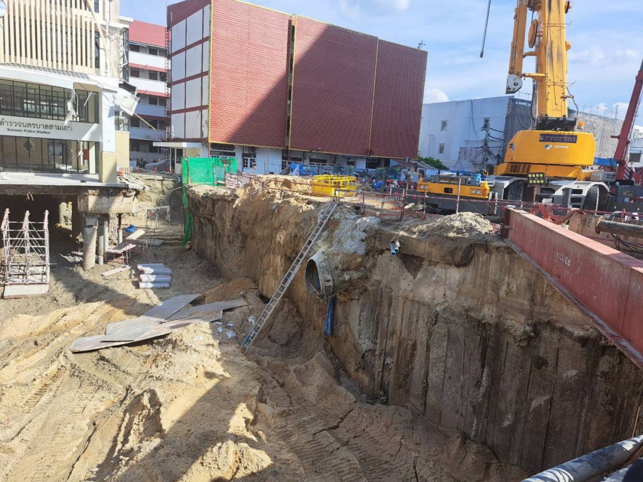 รฟม. แจงการถมทรายอุดหลุมยุบ ถนนสามเสน ยังเป็นไปตามแผน เพิ่มเสาเข็มสั้น 3 ต้น ค้ำยันอาคาร สน.สามเสน พร้อมติดกล้องเฝ้าระวังการสั่นสะเทือน