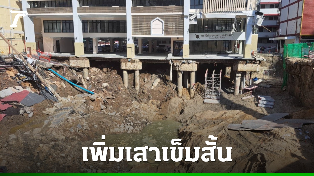 ส่วนการทำงานของเจ้าหน้าที่ในช่วงเช้าที่ผ่านมามุ่งเน้นไปที่การเข้าไปตรวจสอบโครงสร้างของอาคาร สน.สามเสน เป็นหลัก โดยเจ้าหน้าที่ได้ใช้รถแบ็กโฮถมเกลี่ยทรายลงไปในหลุม และทรายอีกส่วนหนึ่งถูกดันเข้าไปใต้อาคาร สน.สามเสน หลังได้ดำเนินการเสริมความมั่นคงแข็งแรง โดยทำตัวค้ำยันชั่วคราว หรือเสาเข็มสั้น จำนวน 3 ต้น และตัดเสาเข็มเดิมออก พร้อมติดตั้งกล้องตรวจสอบความเคลื่อนไหวของอาคาร เพื่อเฝ้าระวังการสั่นสะเทือน ขณะนี้ยังไม่พบการเคลื่อนไหวที่รุนแรงและยังคงปกติ ส่วนการทำงานหลังจากนี้จะสั่งการให้รถบรรทุกขนทรายเข้ามาเพื่อเดินหน้าถมทรายต่อ