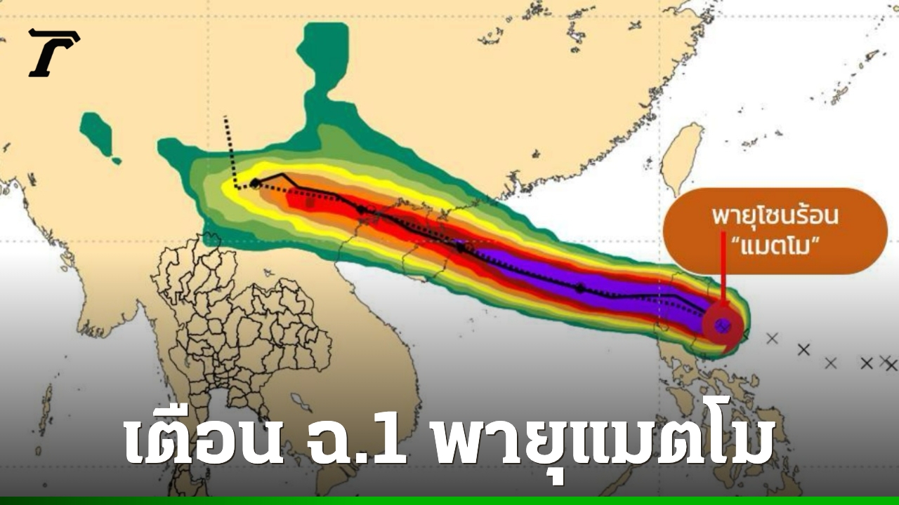 อุตุฯ ออกประกาศฉบับ 1 พายุโซนร้อน "แมตโม" เคลื่อนลงสู่ทะเลจีนใต้ มีแนวโน้มทวีกำลังเป็นไต้ฝุ่น ก่อนขึ้นฝั่งเวียดนาม ทำไทยฝนตกหนัก 5–7 ต.ค. นี้ เตือนพื้นที่เสี่ยงระวังน้ำท่วม น้ำหลาก