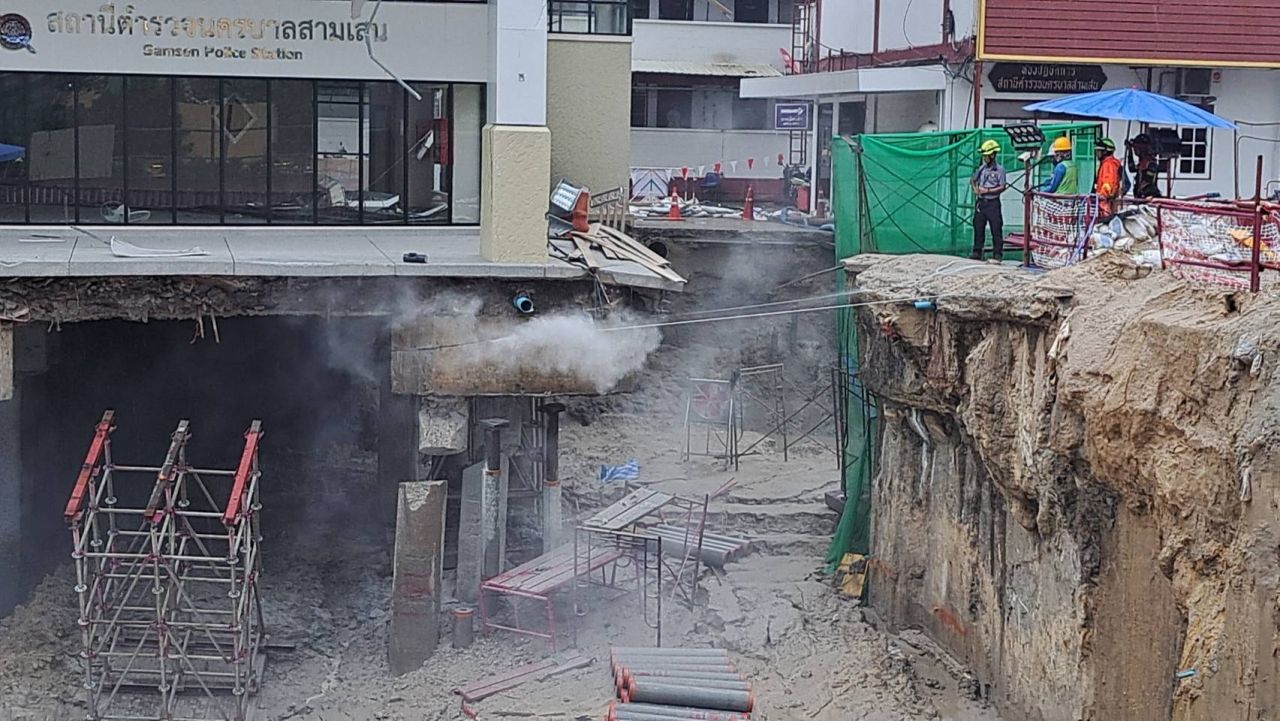 นายทินกร กล่าวต่อว่า ตอนนี้ไม่มีคนงานกล้าลงไปทำงานในหลุมที่ยุบเพราะกลัว สน. ถล่ม ฉะนั้นต้องแก้ปัญหาที่ตัว สน. ต้องลดน้ำหนักของอาคารให้ได้มากที่สุด ยืนยันว่าความปลอดภัยต้องมาก่อน ทั้งนี้หากอาคาร สน. ถล่มลงไปในหลุมจะเกิดความเสียหายร้ายแรงเพราะจะกระทบไปถึงอุโมงค์รถไฟฟ้าแม้จะมีทรายถมลงไปในหลุมแล้วก็ตาม